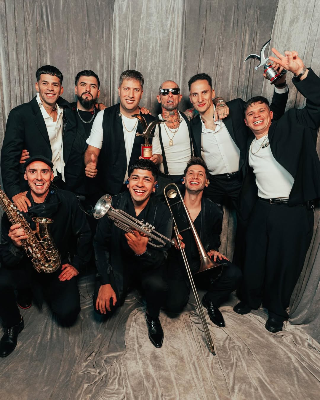 La banda argentina no solo pisó por primera vez el festival de Viña del Mar, sino que mostró una gran performance al sumar instrumentos y en elegantes tonos oscuros en sus outfits, sin perder su estilo.