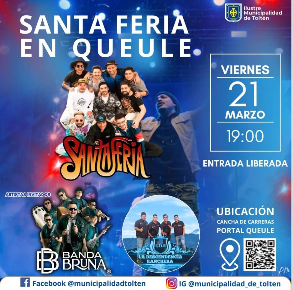 Es que la banda de la cumbia casera se trasladará hasta la caleta de Queule en donde junto a Banda Bruna y La Descendia Ranchera cerrarán oficialmente el verano.