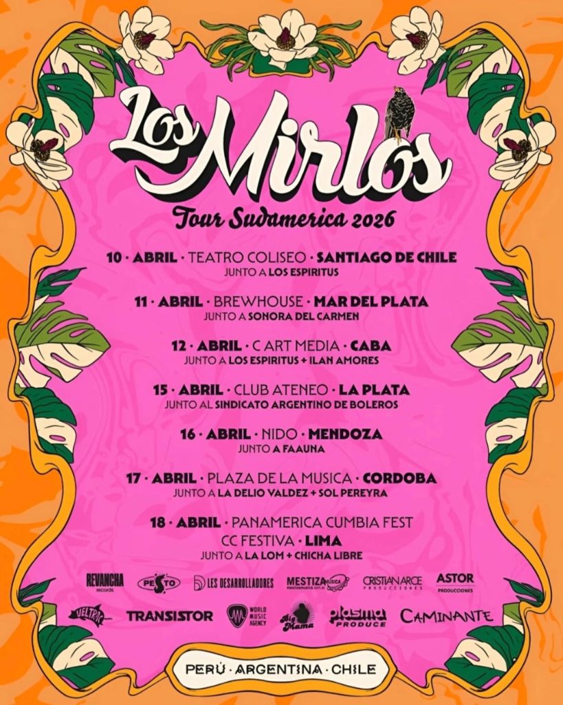 La banda de cumbia amazónica Los Mirlos, confirmó su regreso a Chile en el marco de su nueva gira por Sudamérica que se llevará adelante durante el mes de abril.